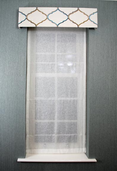 More traditional schemes can be enhanced with Austrian blinds to make a richer more opulent statement.