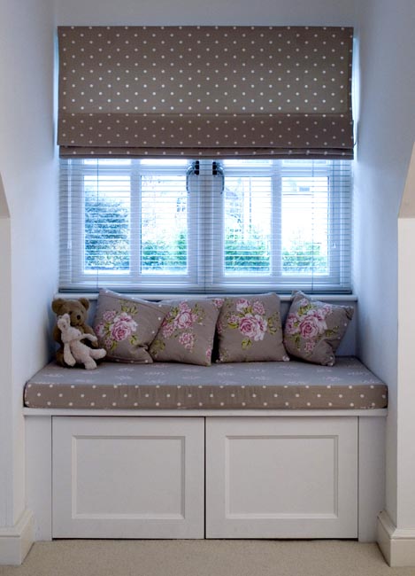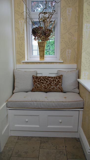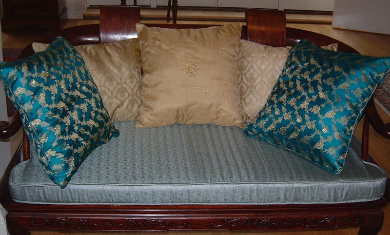 I also offer fitted cushions in the form of boxed pads for window seats, bolsters, or seat pads for benches or chairs.