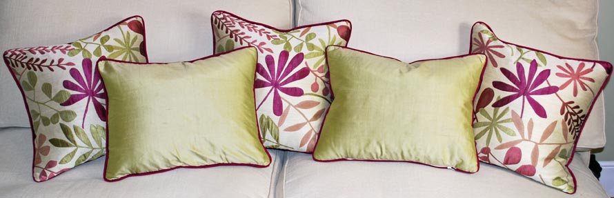 Pads are offered in bespoke sizes and can be made from feather, foam or polyester. I am also able to offer coordinated